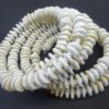 Die Fragmente von Strausseneiern werden in kleine Stücke gebrochen. Jedem Teilchen werden die Kanten mit einem spitzen Metall gerundet. Die Löcher werden mit einem handgefertigten Werkzeug gebohrt.