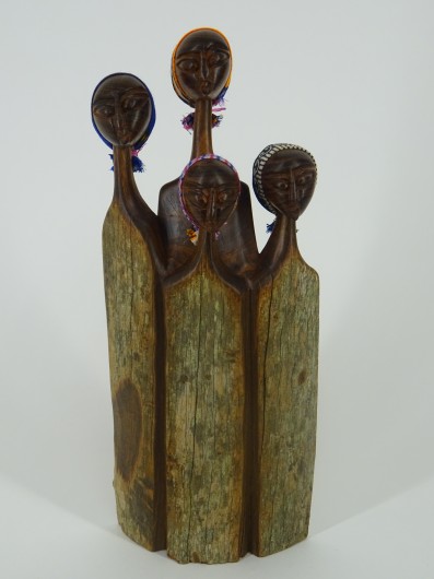 Die „Unzertrennlichen“, eine wunderschöne, handgefertigte Skulptur aus edlem Sandelholz. Bei diesen Holzfiguren kann man mit Recht von Unzertrennlichen sprechen, der interessierte Betrachter glaubt die feingearbeiteten Gesichter wachsen aus dem Holz heraus. Das Kunstwerk zeigt das Motiv einer afrikanischen Frauengruppe und wird aus einem Stück des edlen Holzes geschnitzt.