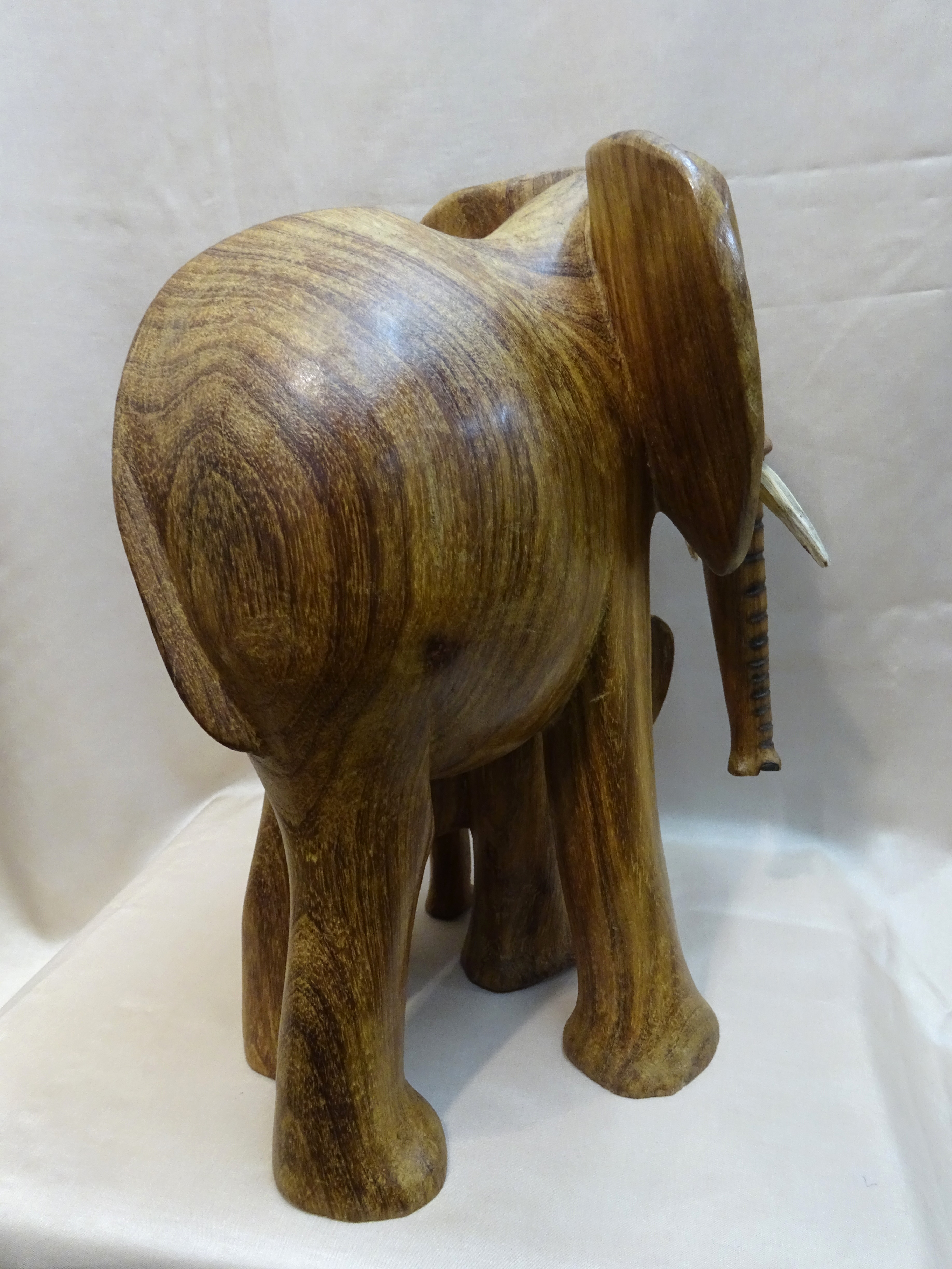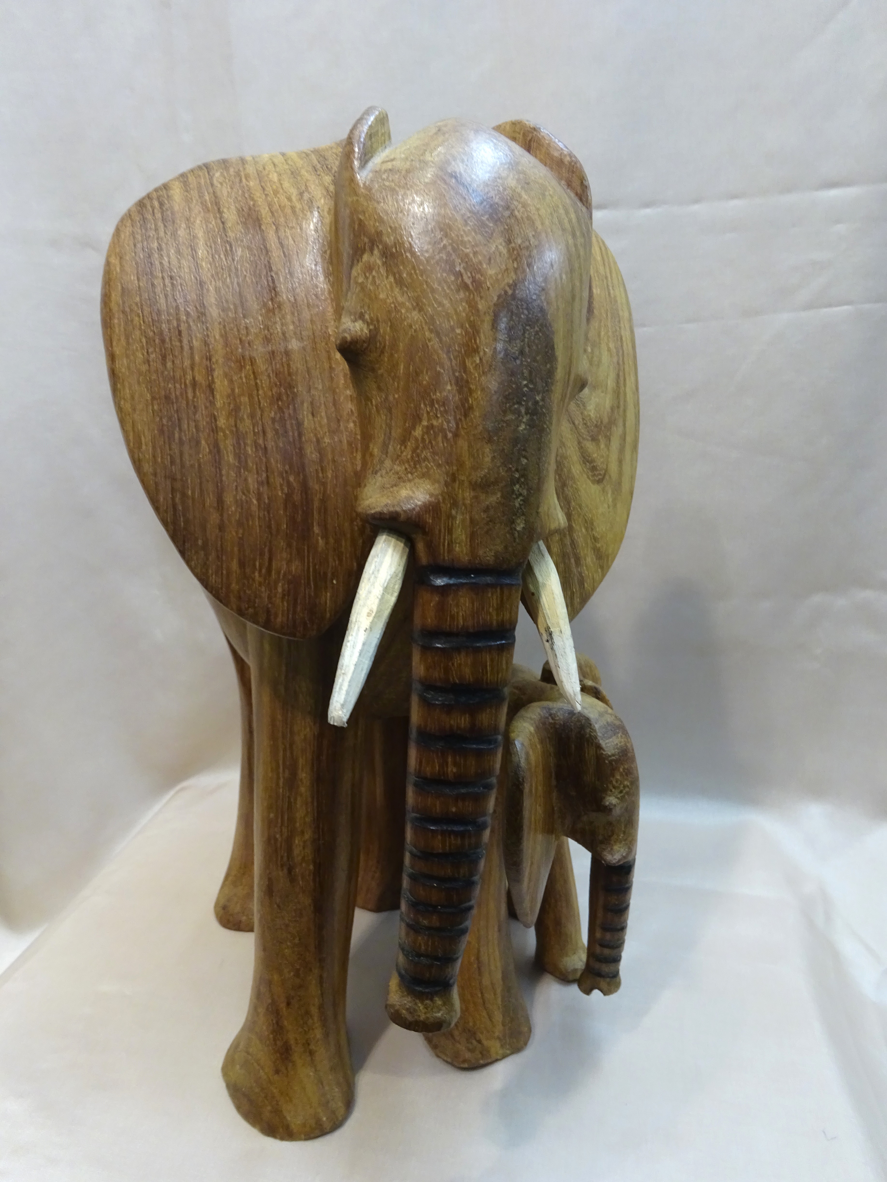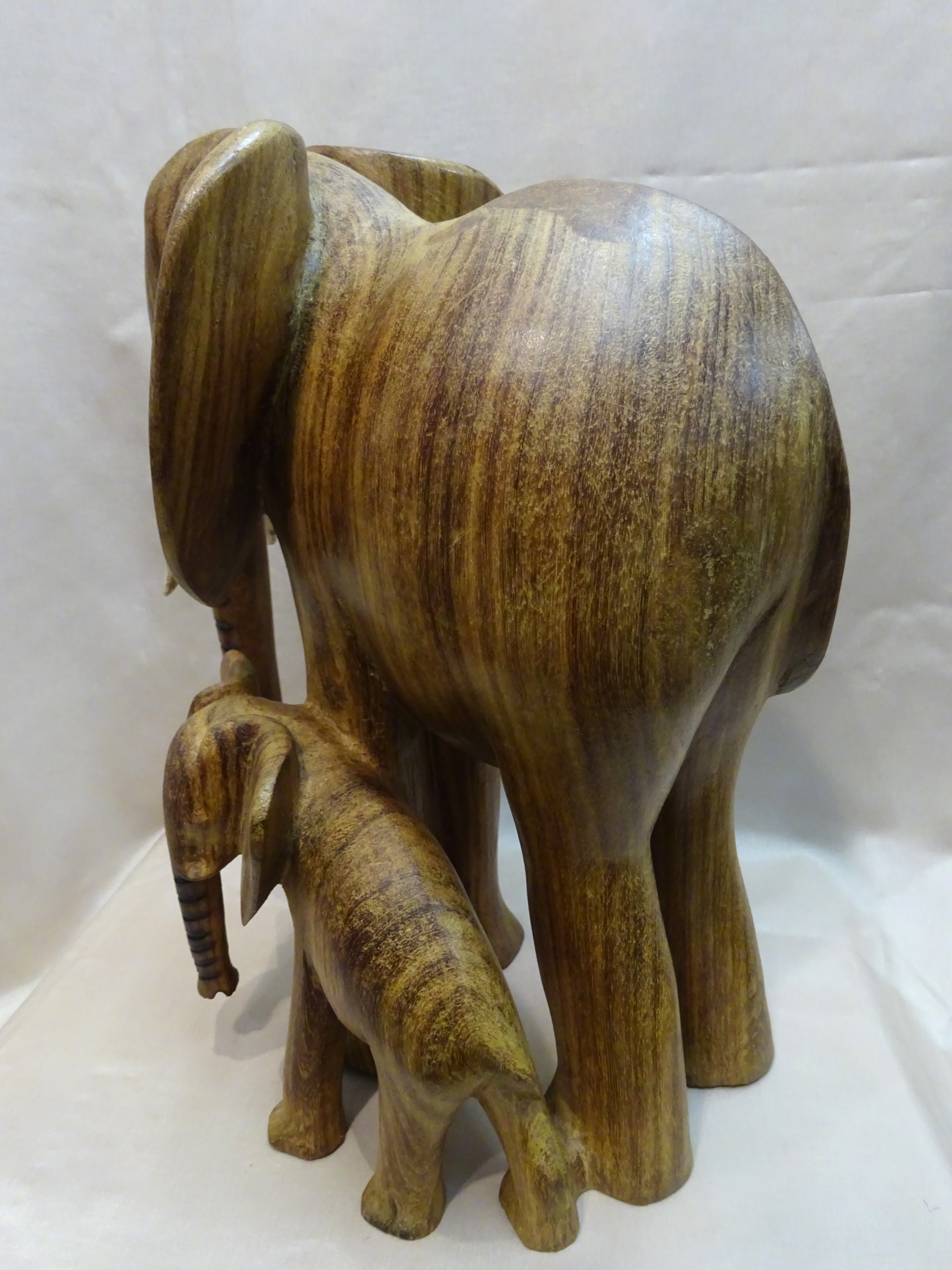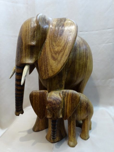 Das kunstvoll aus Dolfholz geschnitzte Elefantenduo aus einem Stück ist einzigartig.