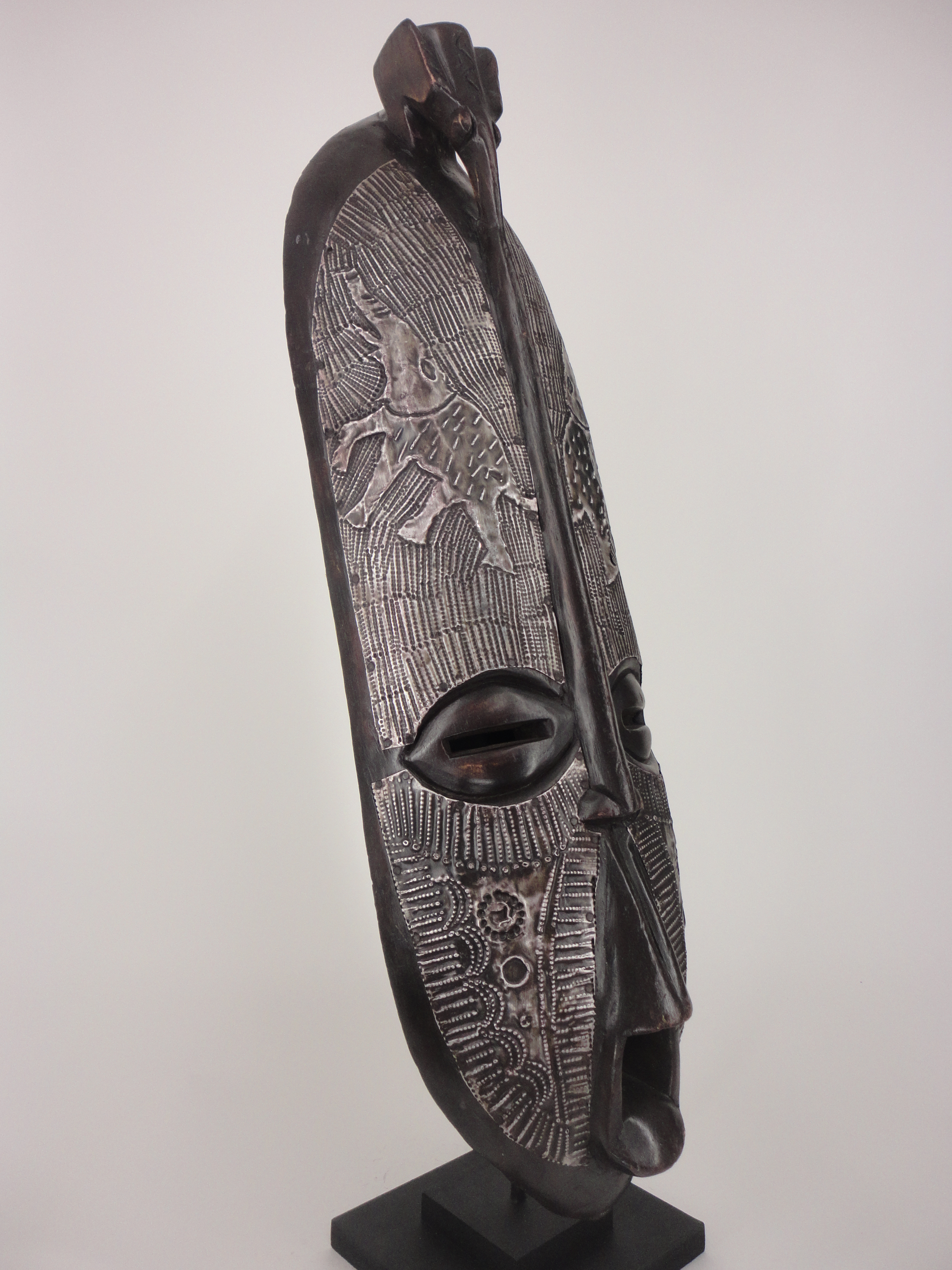 Masken und Schilder sind in der afrikanischen Kultur wichtige Bestandteile von Ritualen und Zeremonien. So werden je nach Sujet Tiere, Könige, Häuptlinge aber auch das Wetter, der Regen, die Sonne usw. verehrt oder herbei gewünscht.