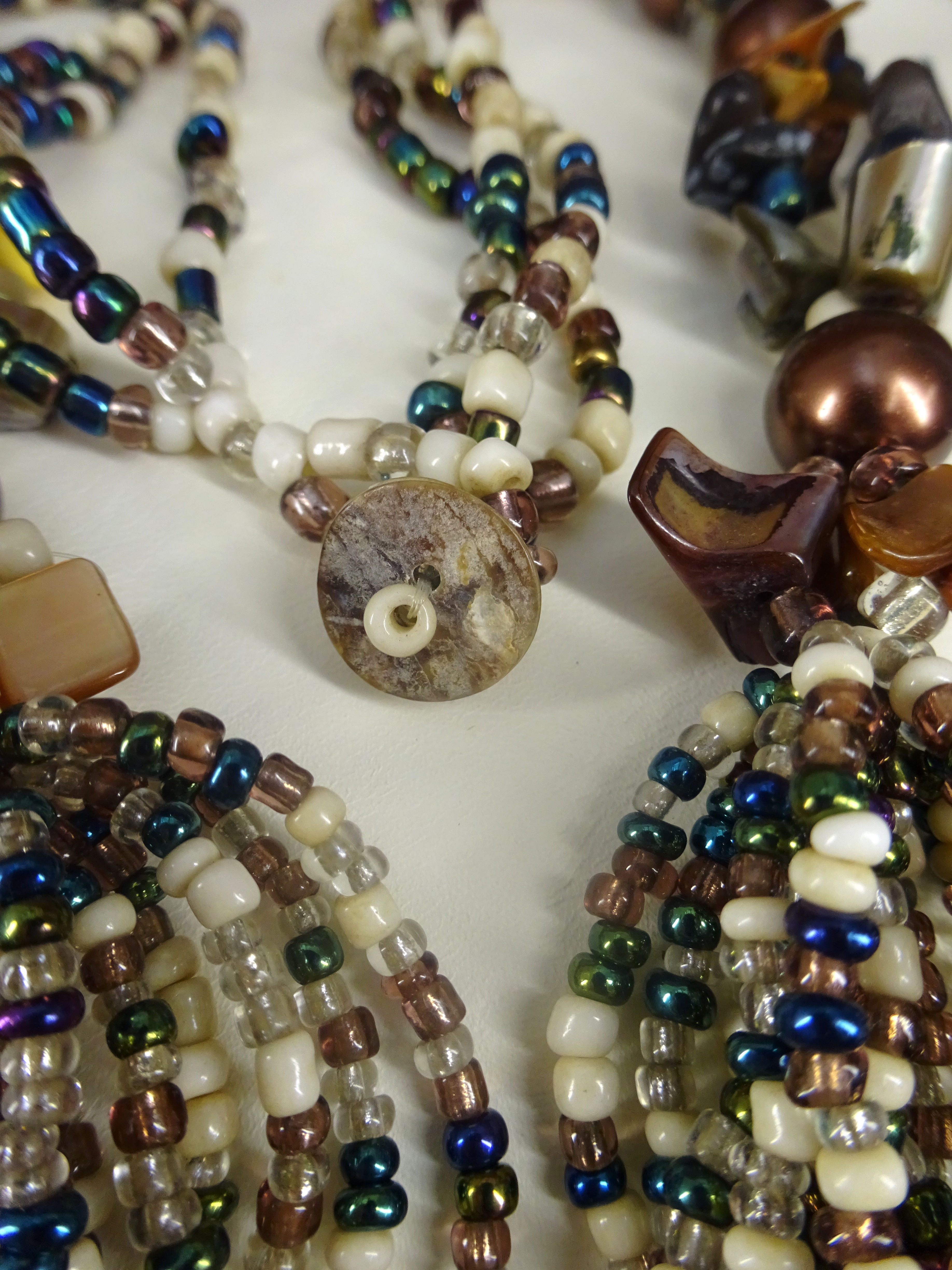 So bunt wie der Kontinent ist auch der Schmuck aus Afrika. Wunderschöne Halsketten, Bracelets und Colliers werden in Handarbeit aus natürlichen Materialien wie Holz, Perlmutt und bunten Glasperlen hergestellt.